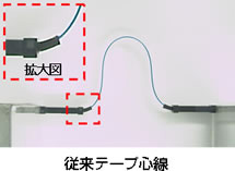 - 通常のコネクタはプラグを左右に動かして挿抜するため、ファイバをたわませる必要がありますが、既存のテープファイバは剛直性がありすぎて扱いにくくなります。しかし、本製品は可撓性に優れ、片面構造であるために座屈力が小さく、光ファイバの種類によっては1cmのスペースでもたわませることが可能です。