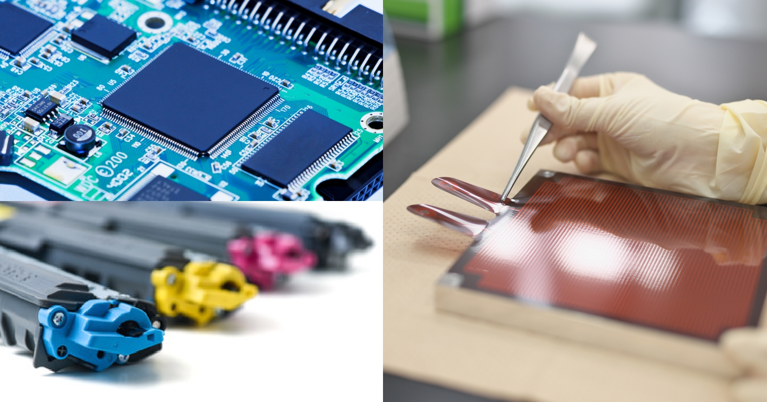 半導体用部材であるリードフレーム固定用テープやプリンターで使われるトナーなど、さまざまな製品で世界トップクラスの実績を持っています。『研究開発型メーカー』であるTOMOEGAWAが生み出すオリジナリティーの高い製品たちは、国内外を問わず様々な市場において高く評価されており、特にリードフレーム固定用テープについては国際的な品質規格として活用されています。