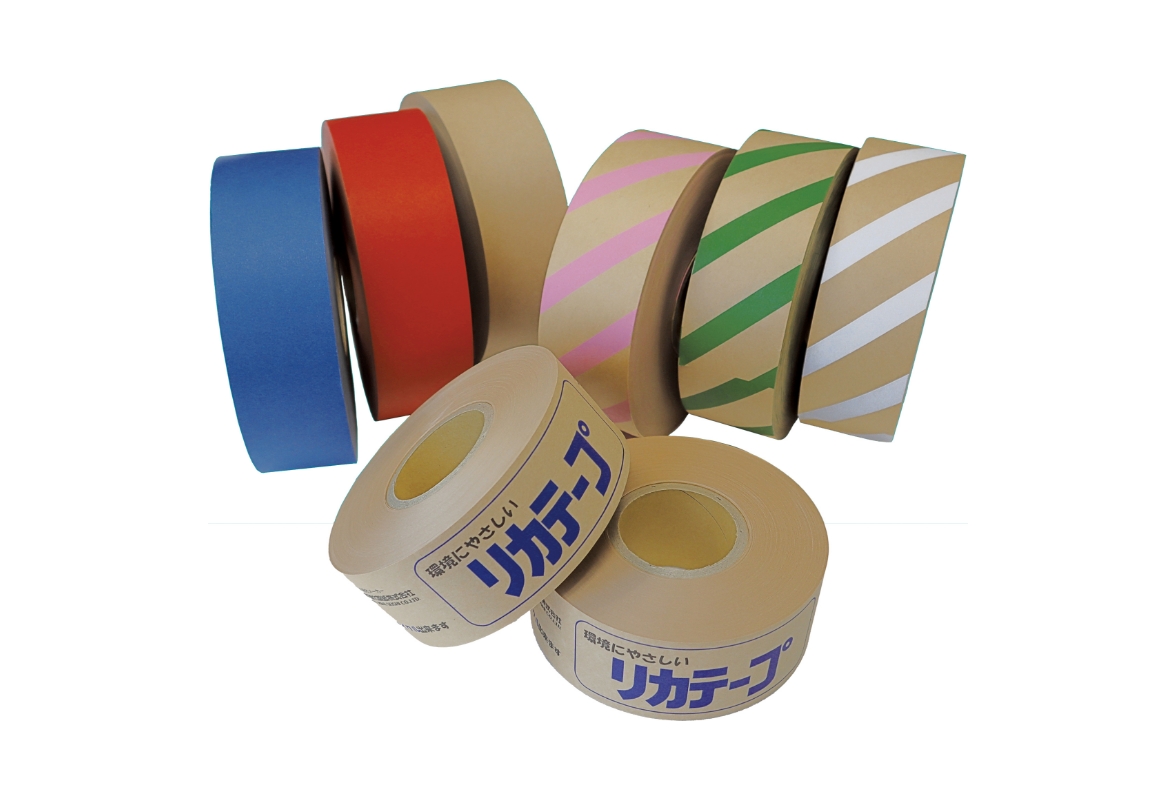 水で湿らせて接着する、環境に配慮した澱粉糊を使用した接着テープです。クラフト紙と澱粉糊で構成されており環境負荷が低く、使用後、段ボールとの分別が不要です(リサイクルを阻害しません)。また、石油由来のプラスチック類などは使用していない脱プラ製品であることも特徴の一つです。