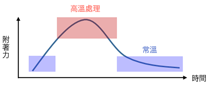 iCas F-TR具有一種獨特的特性,加熱後粘接力暫時增強,而隨後繼續加熱則粘接力降低。